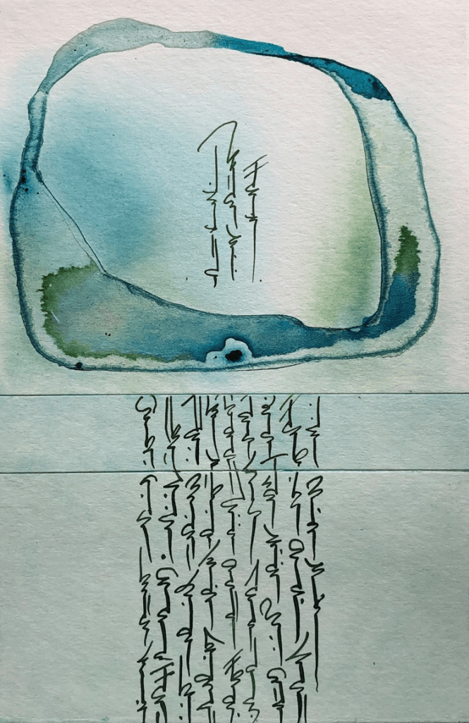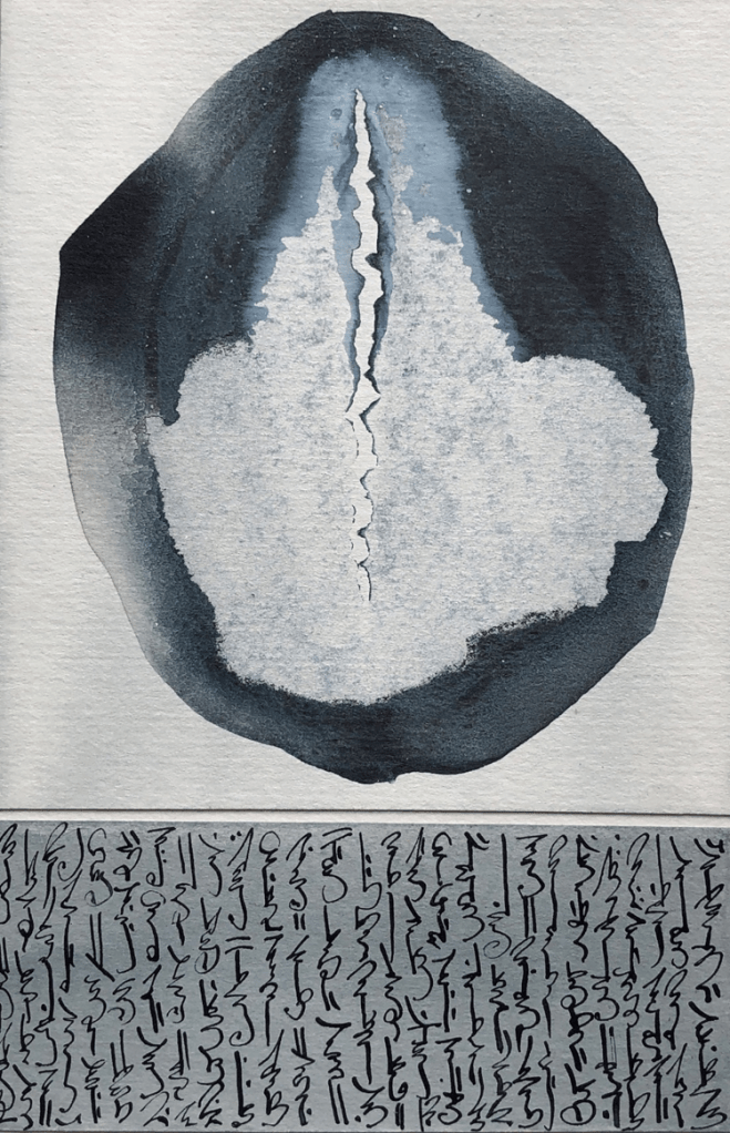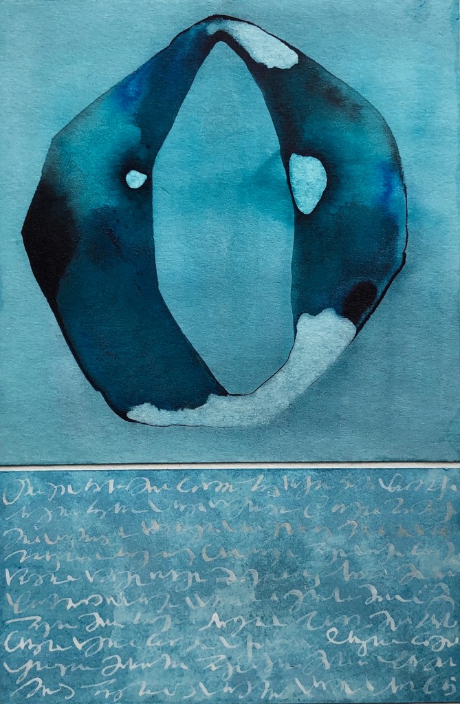 When working with ink on paper my works are often the size of a book page, so when seen, it is as if they were an ancient text, discovered and waiting to be translated by the viewer. My intent is to create a sense of stillness, a place where feeling can open and be experienced.