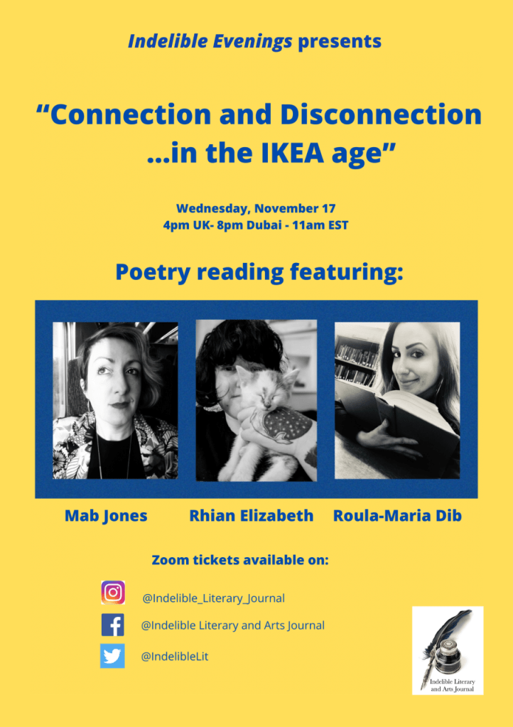 - 15 October 2020: Indelible Evenings 3–On Ekphrasis: in conversation with Salma Ahmad Caller, Chris Murray, and Lorette C. Luzajic